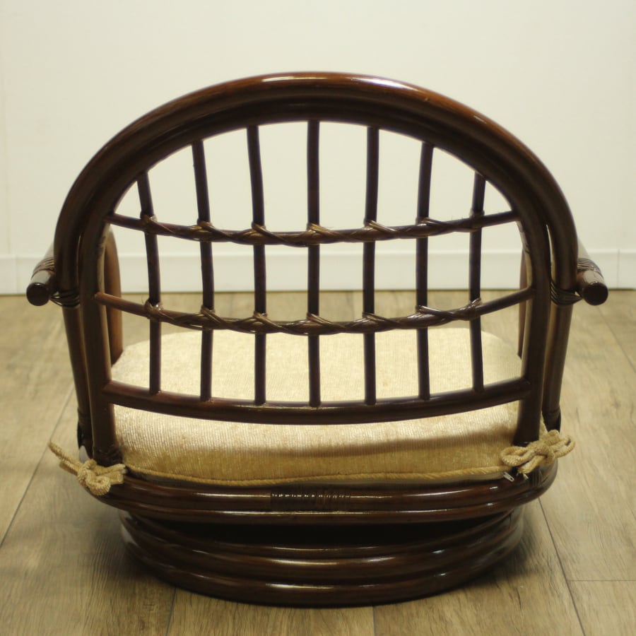 籐 ラタン 回転座椅子 ロータイプ 座面低め 16cm クッション無地 座面回転 360度 籐家具 アームチェア リビング 居間 和室 洋室 KIA-05LWC